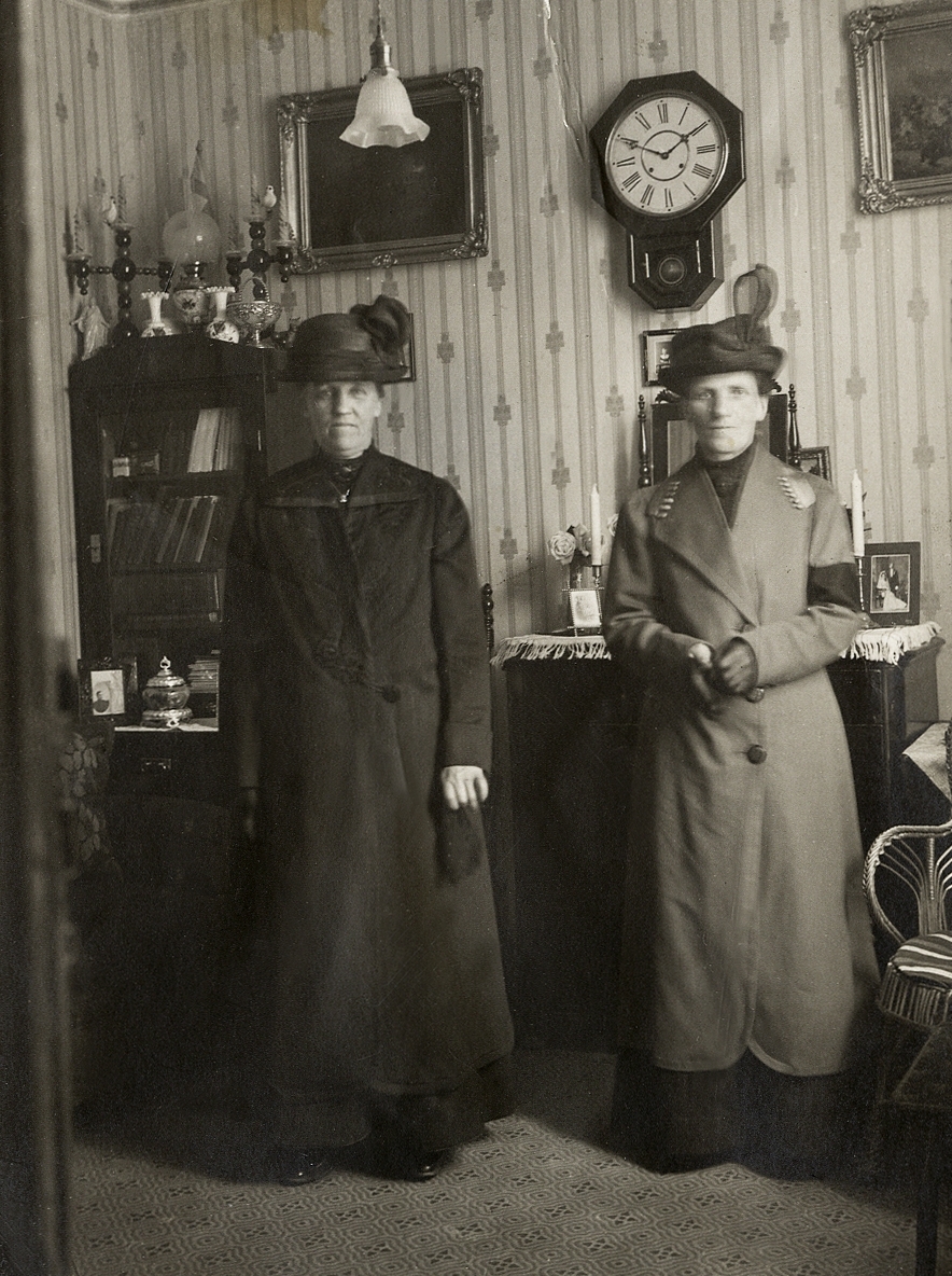 "Anna i kiosken" (vid järnvägsstationen) med väninna (?) (syster?). Växjö, ca 1914.