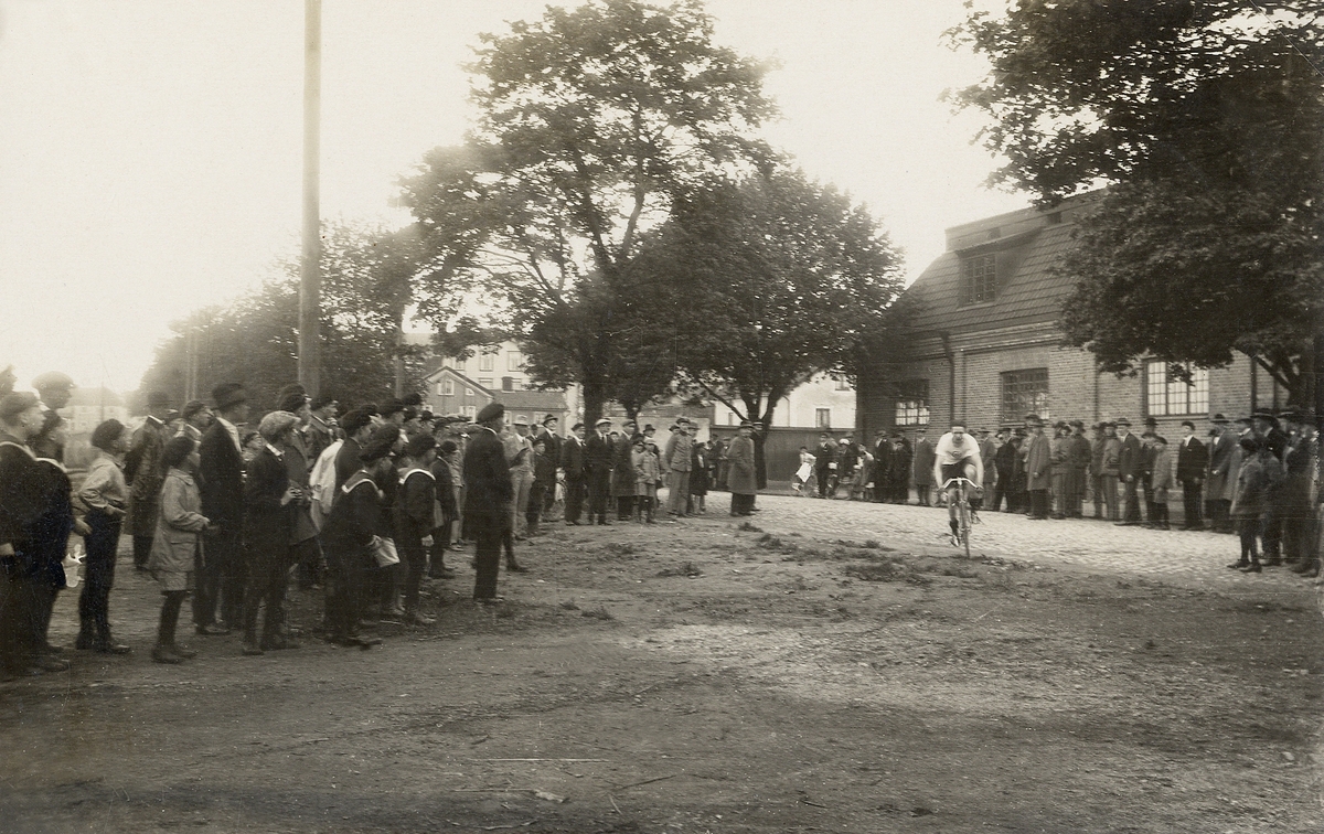 Elden och Trasten. En talrik publik har samlats, däribland några militärer klädda i m/10.