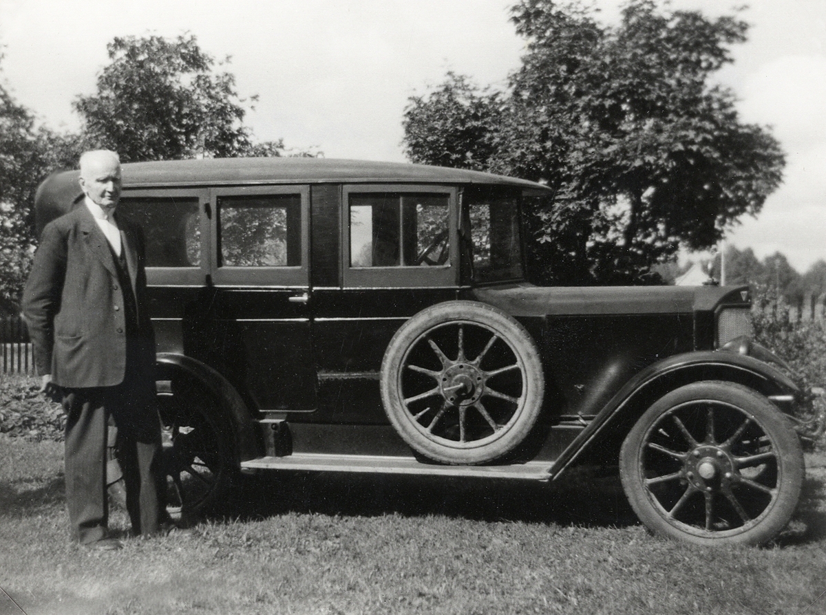 Kyrkoherde Klaes Ludvig Lundén i Nottebäck med bil, 3 sep 1958.