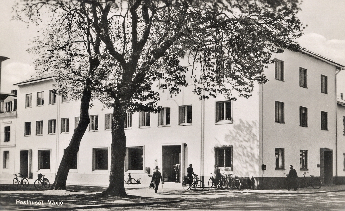 Posthuset, Växjö, ca 1940. Hörnet Norrgatan/Kronobergsgatan (kv. Gunnar Gröpe nr 7) (?).