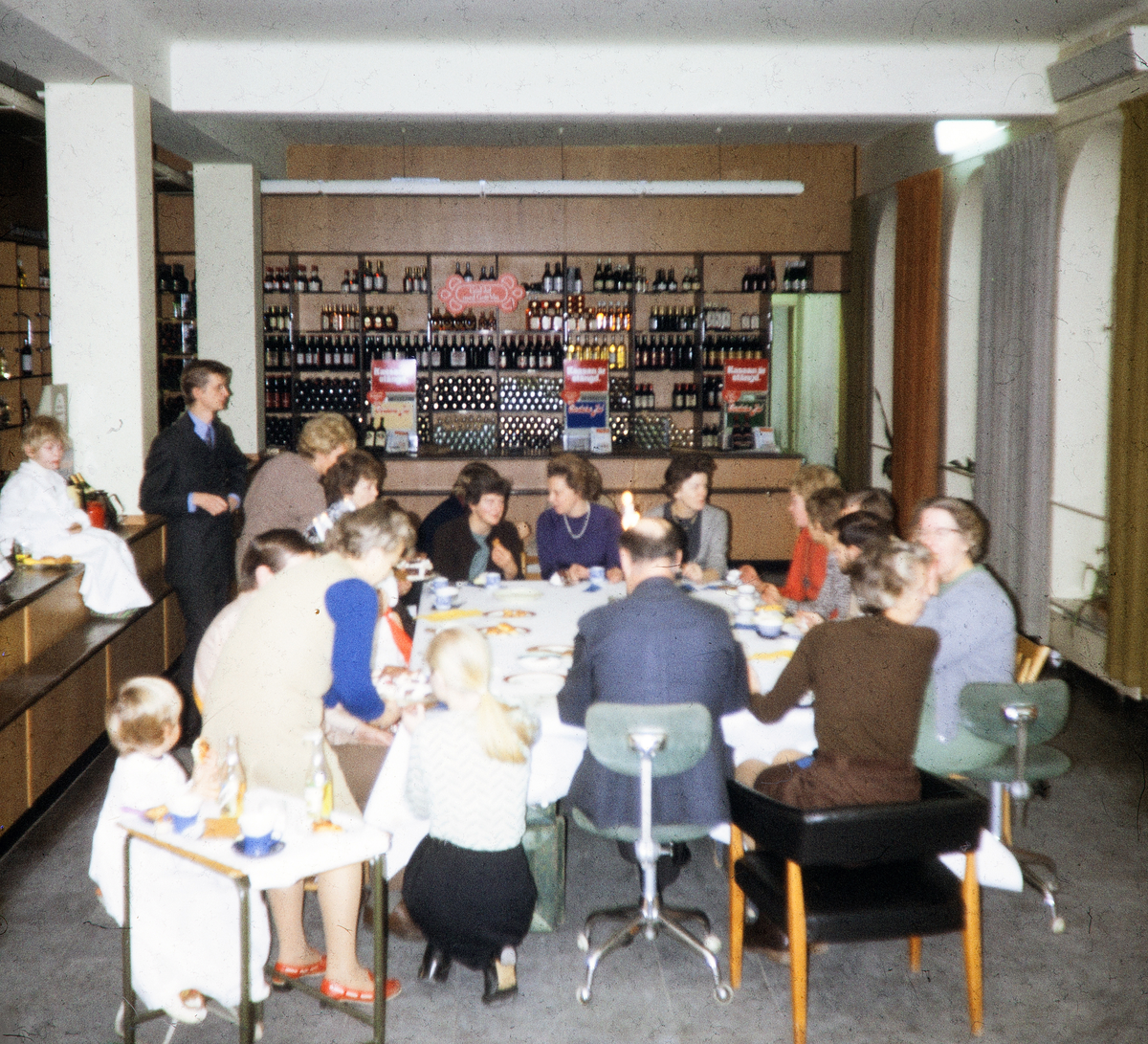 Luciafirande på Systembolaget, Växjö. Man har dukat för kaffe i affären.