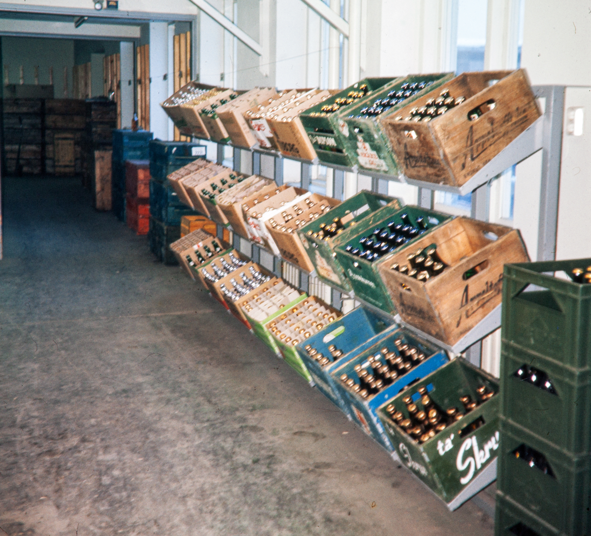 Systembolaget, Växjö. En ställning för ölbackar på lagret, efter idé av Nils Hyltén-Cavallius.