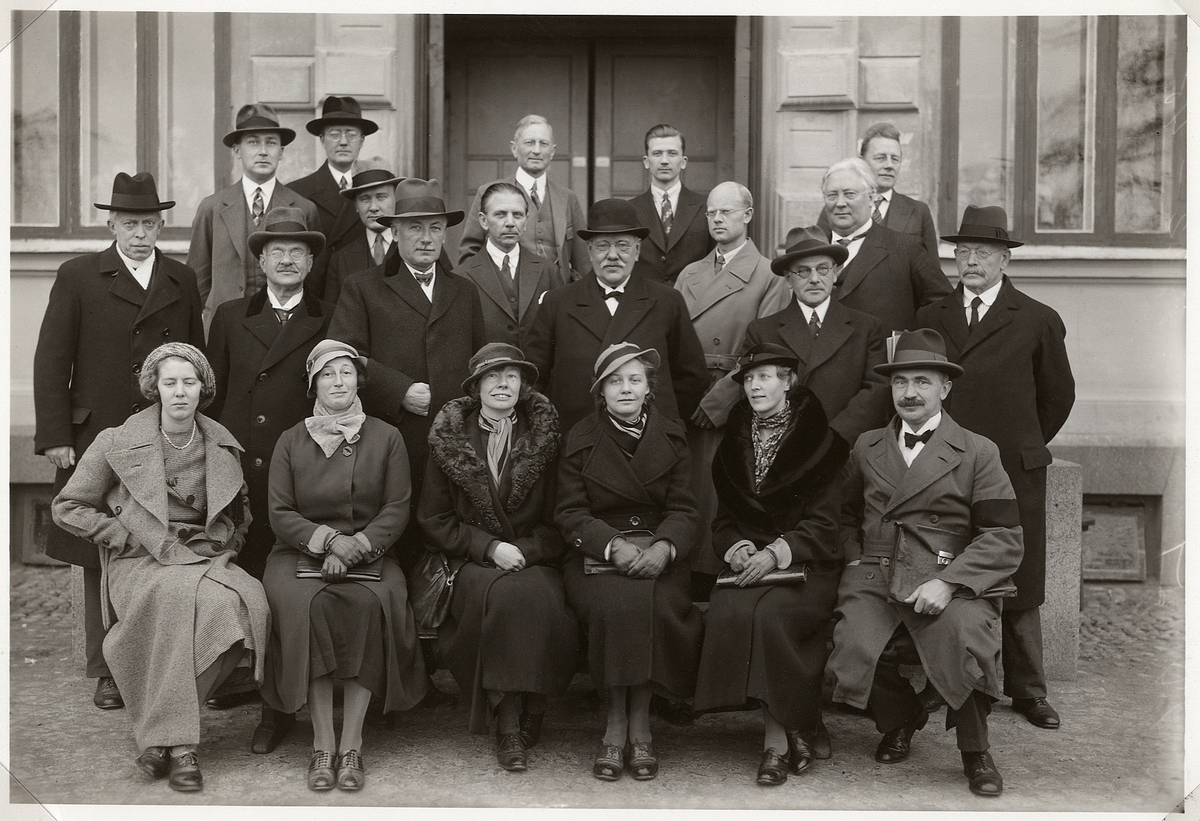 Lärarkollegiet (lärarkåren) vid Växjö Högre Allmänna Läroverk, ca 1935. I mittraden syns bl a rektor Gustaf Ernst.