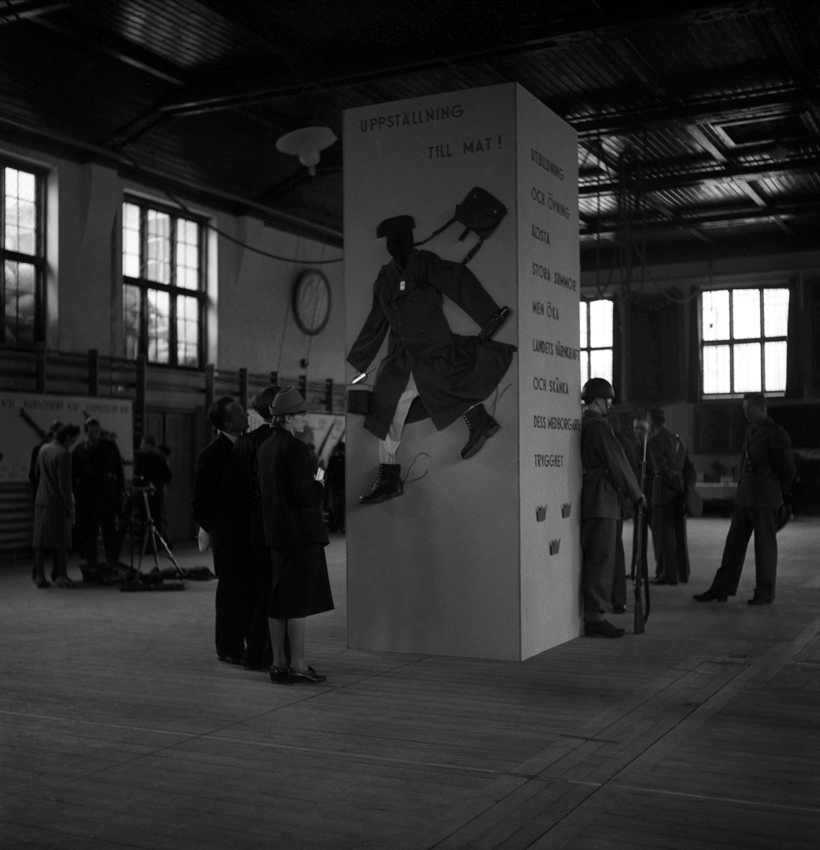 Försvarets dag. Foto av gymnastikhallen med utställning.