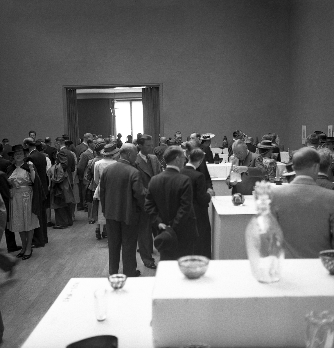 Glasets dag. Publikbild från stora salen i glasutställningen på Smålands Museum.