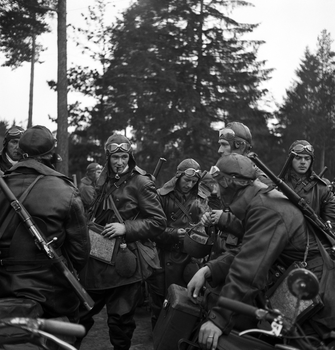 Några män på motorcyklar röker pipa och pratar, I 11, Växjö.
