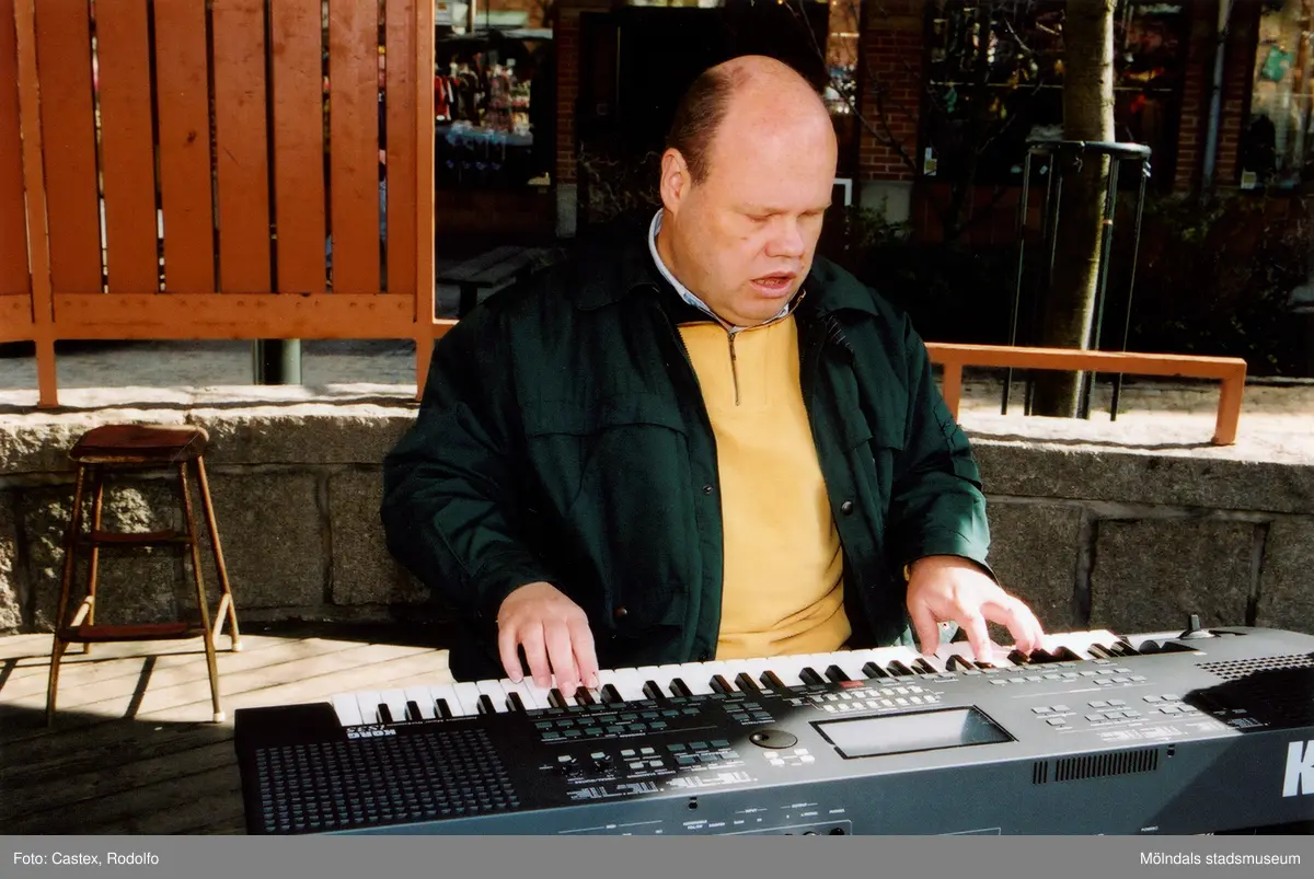 Påskfirande på Mölndals torg i april 2000. På scenen står Claes Westerdahl för musikunderhållningen.