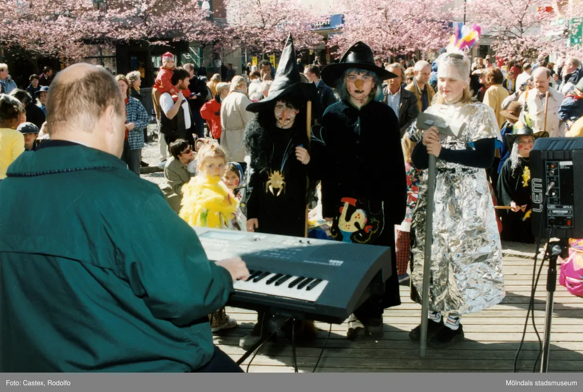 Titel: Påskfirande på Mölndals torg i april 2000. På scenen står Claes Westerdahl för musikunderhållningen.