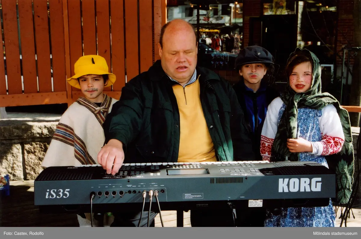 Påskfirande på Mölndals torg i april 2000. På scenen står Claes Westerdahl för musikunderhållningen.