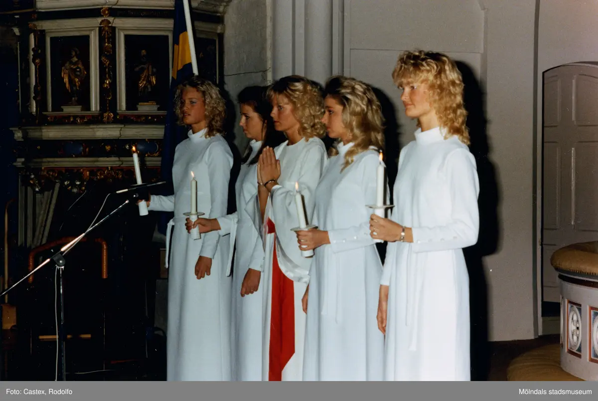 Kröningen av Mölndals Lucia i Fässbergs kyrka i december 1985.