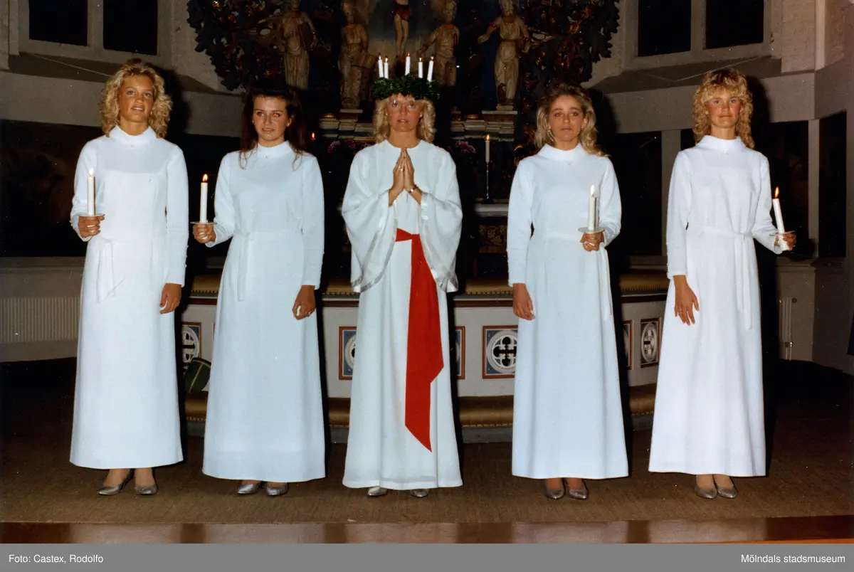 Kröningen av Mölndals Lucia i Fässbergs kyrka i december 1985.