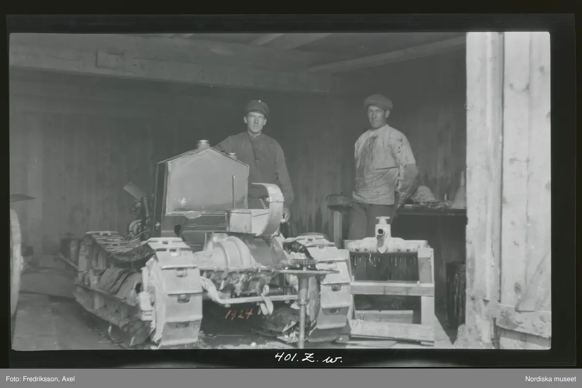 "Gösta Blomgren, Adolf Larsson lagar traktor, Fogelstad."