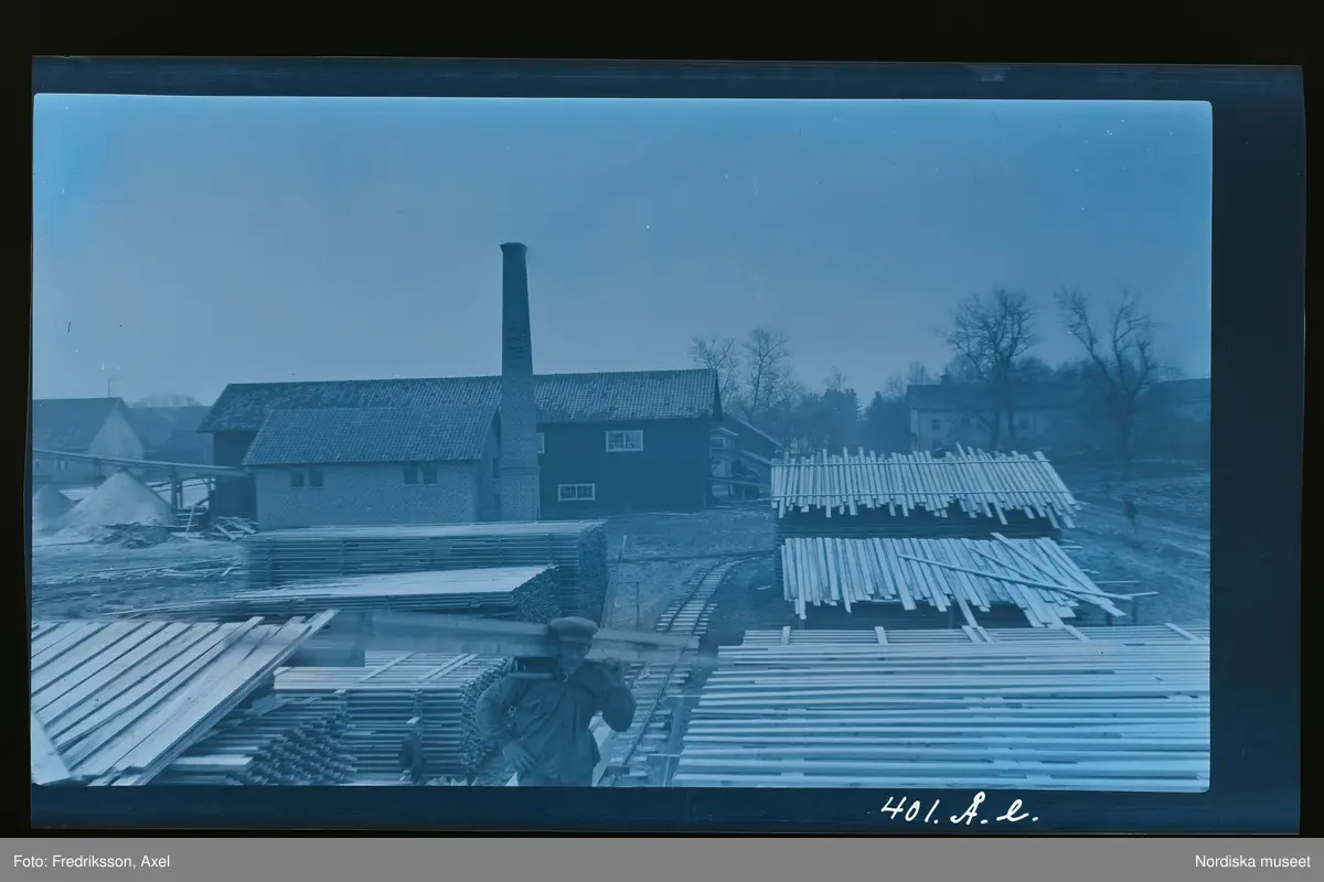 "Axel bär plank vid Fogelstads såg."