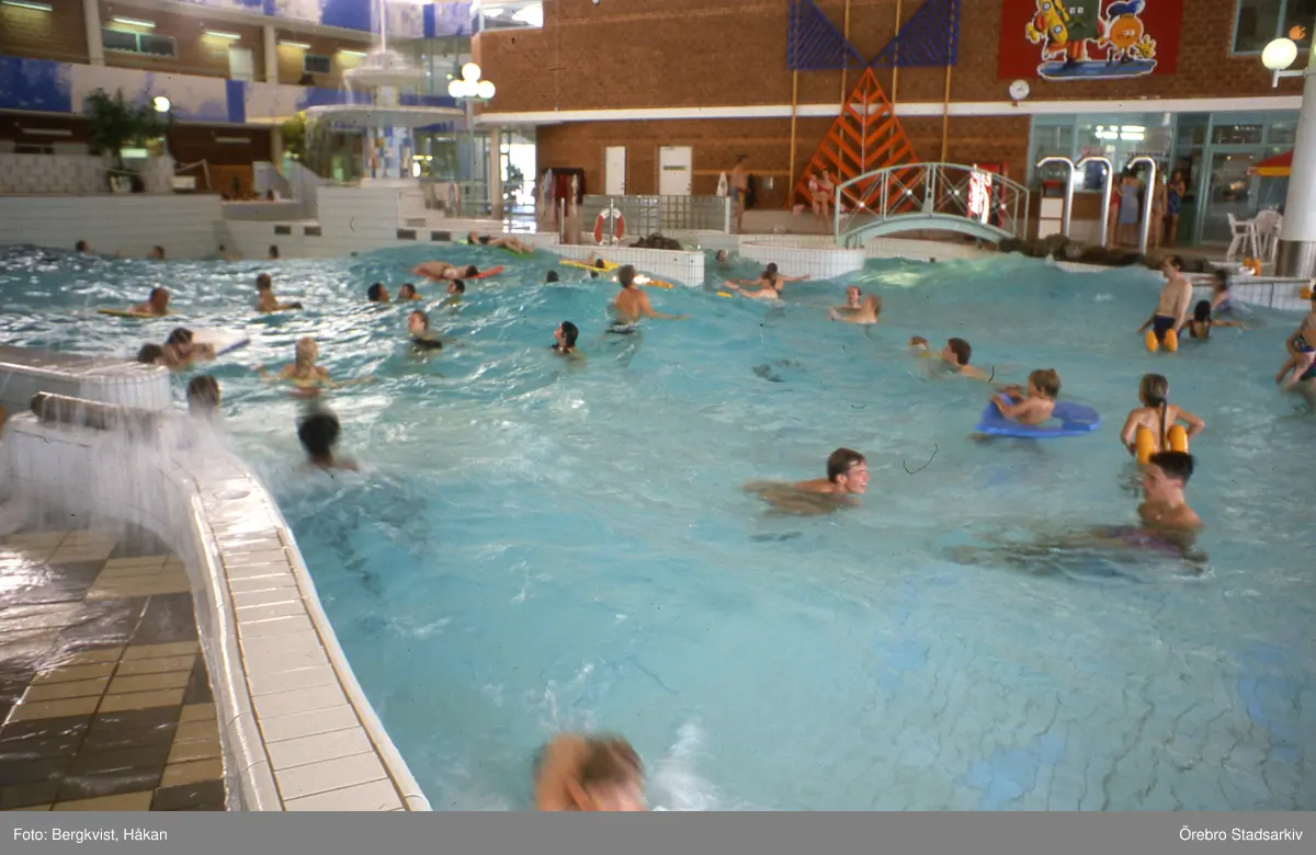 Badgäster simmar i bassäng i Gustavsvik, 1989