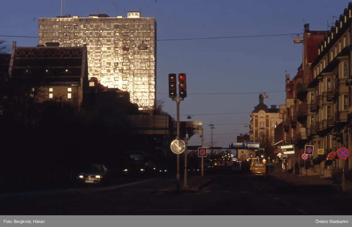 Ett av Krämarhusen upplyst från mot väster, 1989