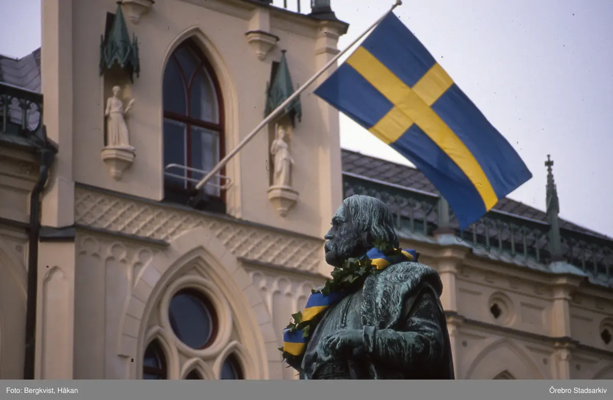 Engelbrektsstatyn framför Örebro Rådhus, 1989