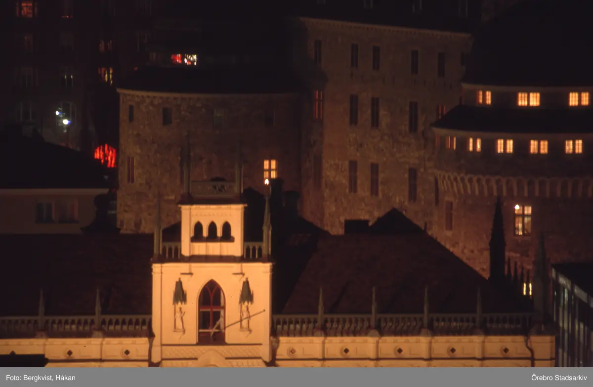 Taket på Örebro rådhus framför Örebro slott, 1989
