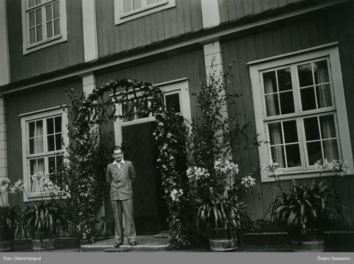 Johan Gripenstedt i blomsterportal på Bystad efter examen, 1940
