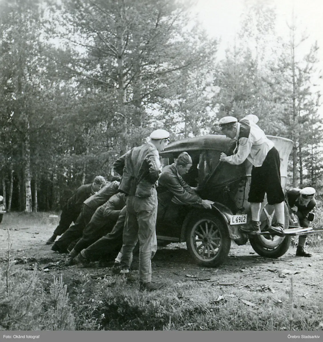 Eleverna måste skjuta igång bilen inför åkturen med Forden, 1947