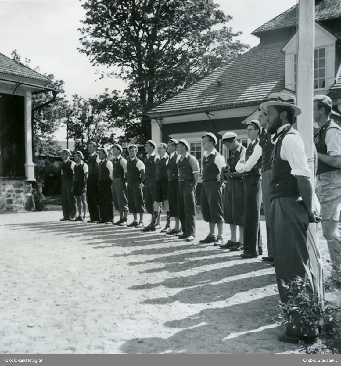 Nyinryckta och rakade Skogisar har anlänt till Malingsbospelen, 1948