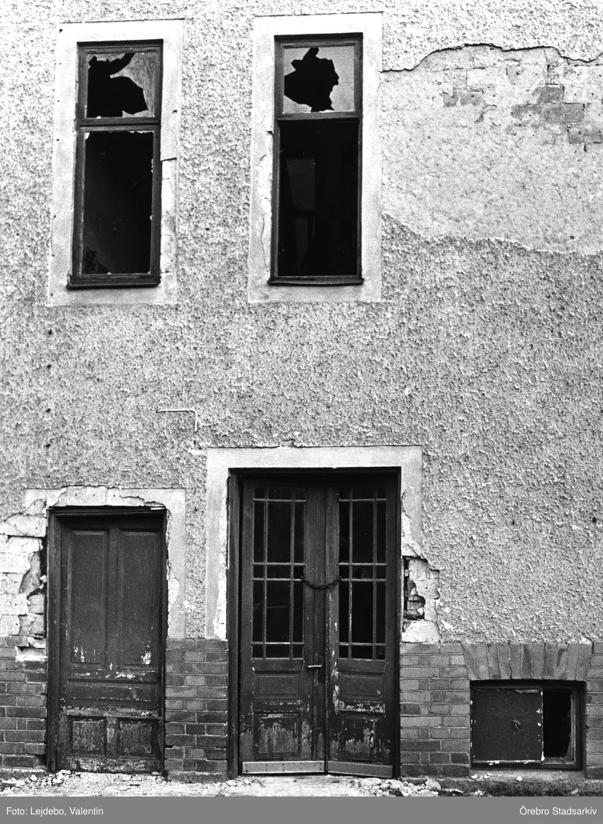 Dörrar och fönster på rivningshus på Gustavsgatan 17, 1980-tal
