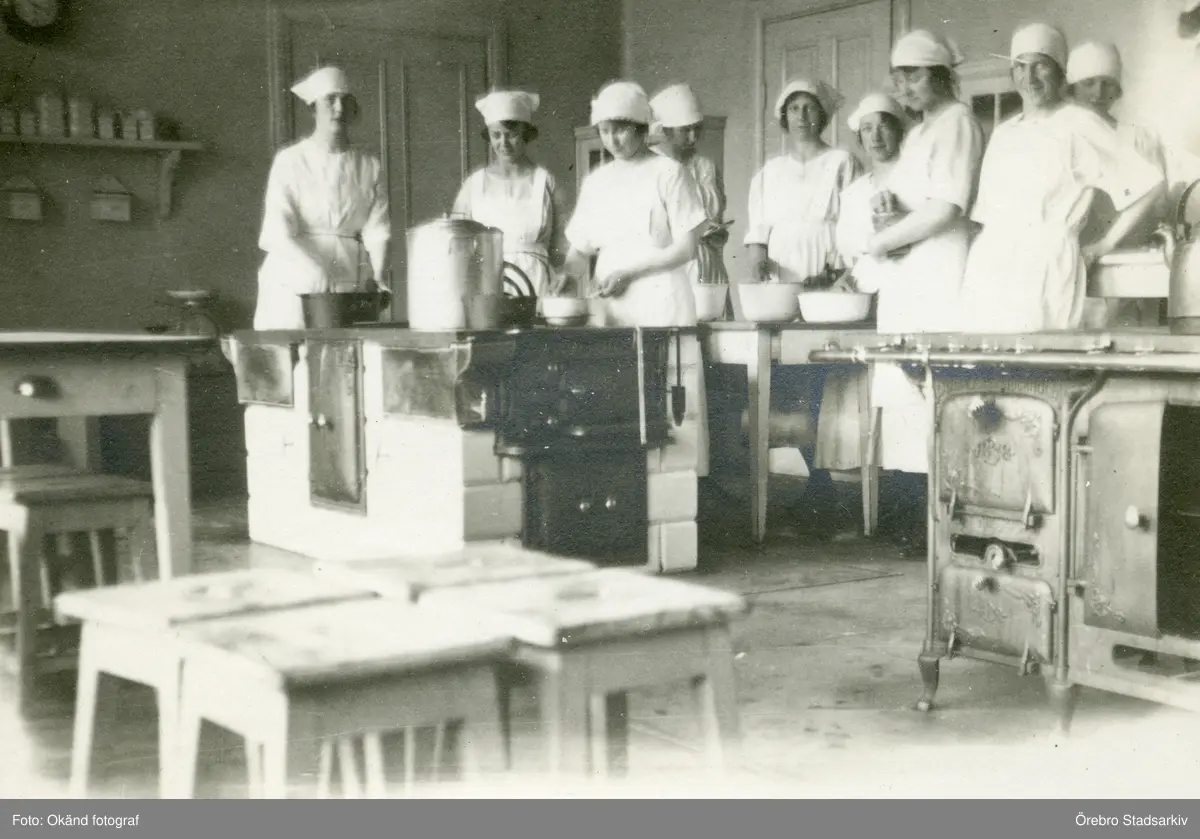 Elever vid Örebro läns småskollärarinneseminarium i skolköket, 1922