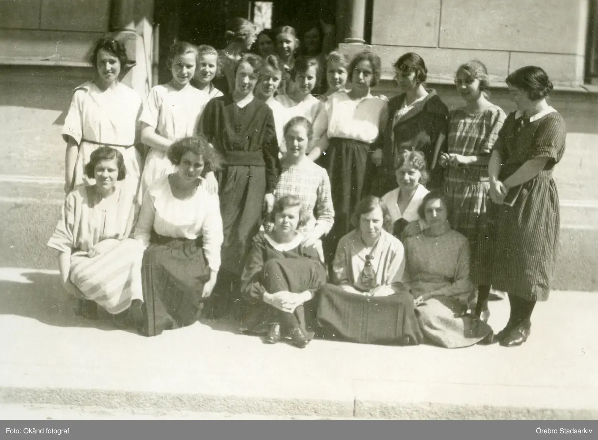 Elever vid Örebro läns småskollärarinneseminarium framför kameran, våren 1923