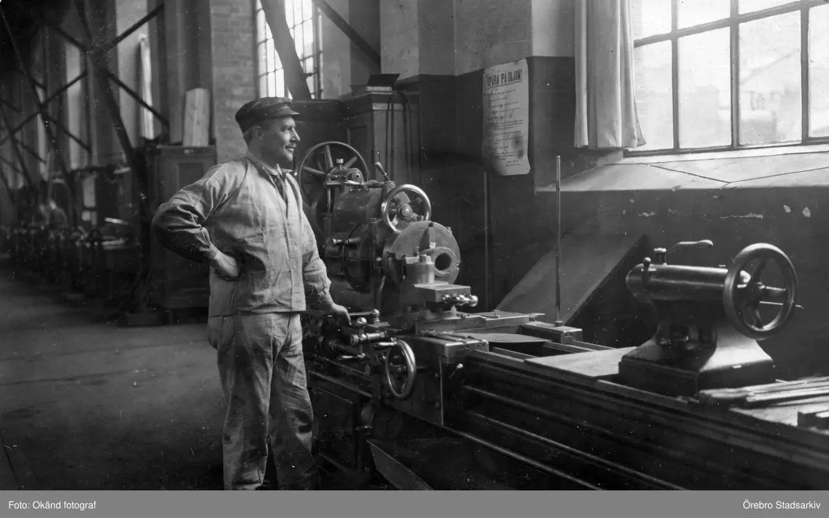 Man i Centralverkstädernas svarvarverkstad, 1910-tal