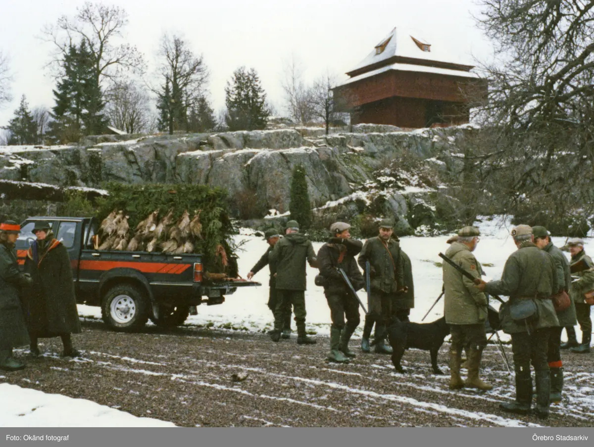 Jägare på vinterjakt på Bystad, 1987