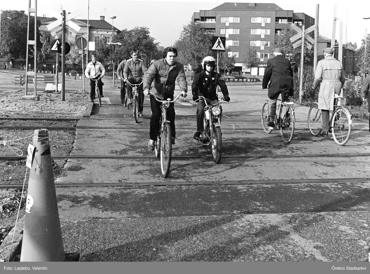 Cyklister vid järnvägsövergången vid Vasatorget, före 1978