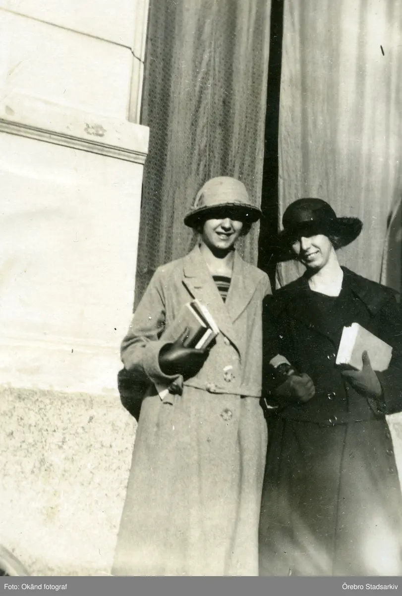 Två elever vid Örebro läns måskollärarinneseminarium med läseböcker, 1922