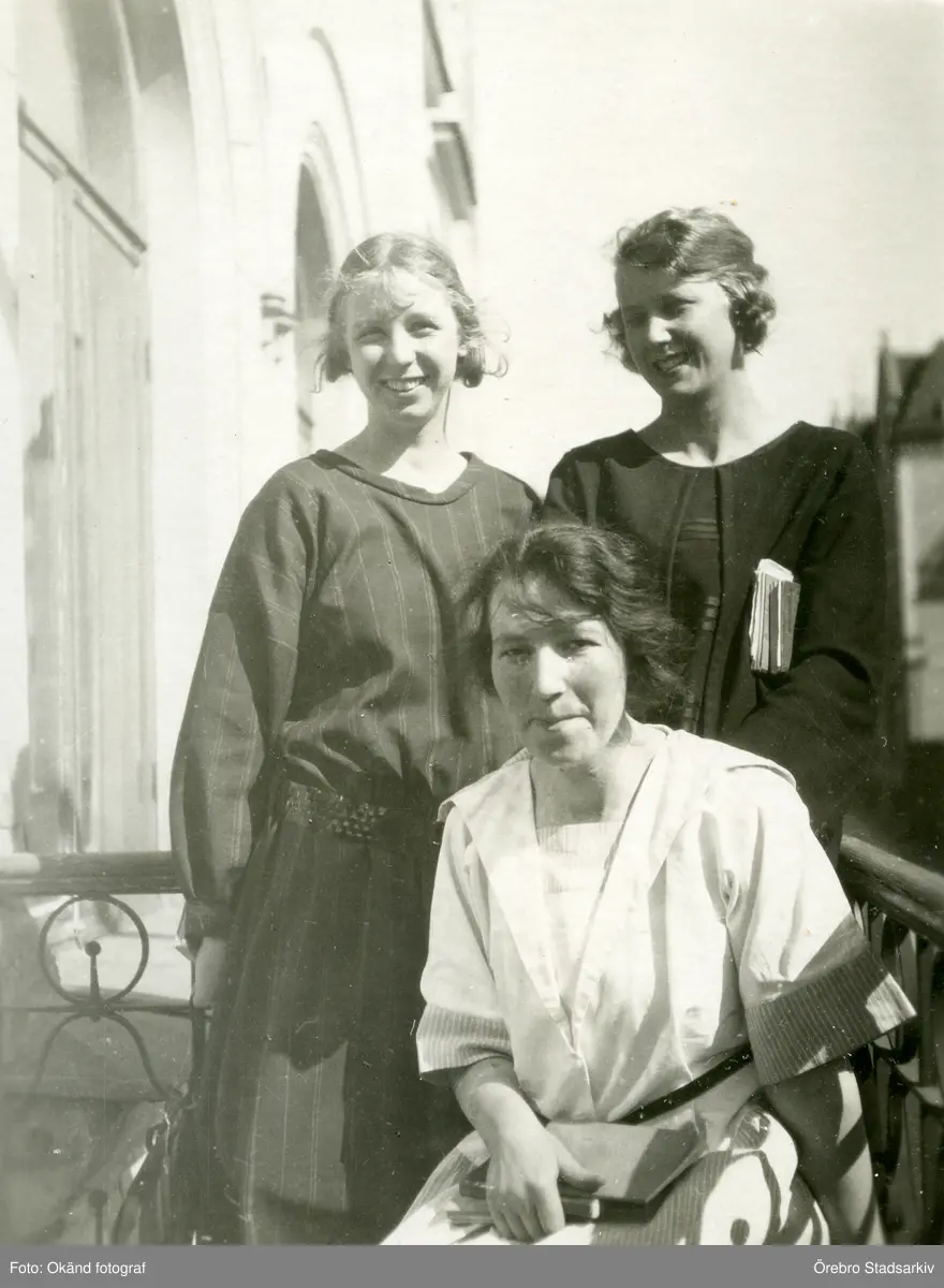 Elever vid Örebro läns småskollärarinneseminarium på balkongen, 1920-tal