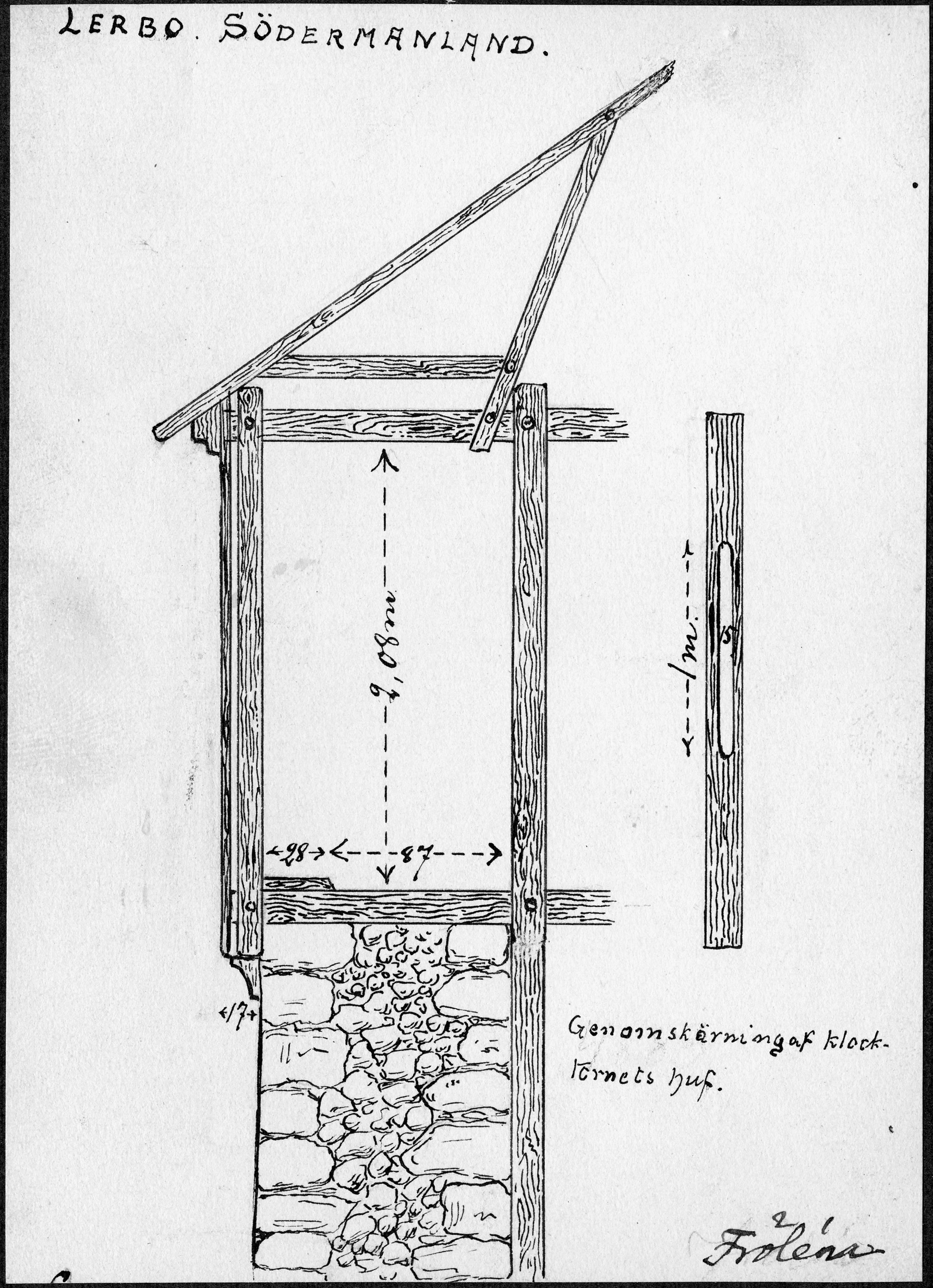 Ritning av klocktornet, genomskärning. Signerad Frölén.