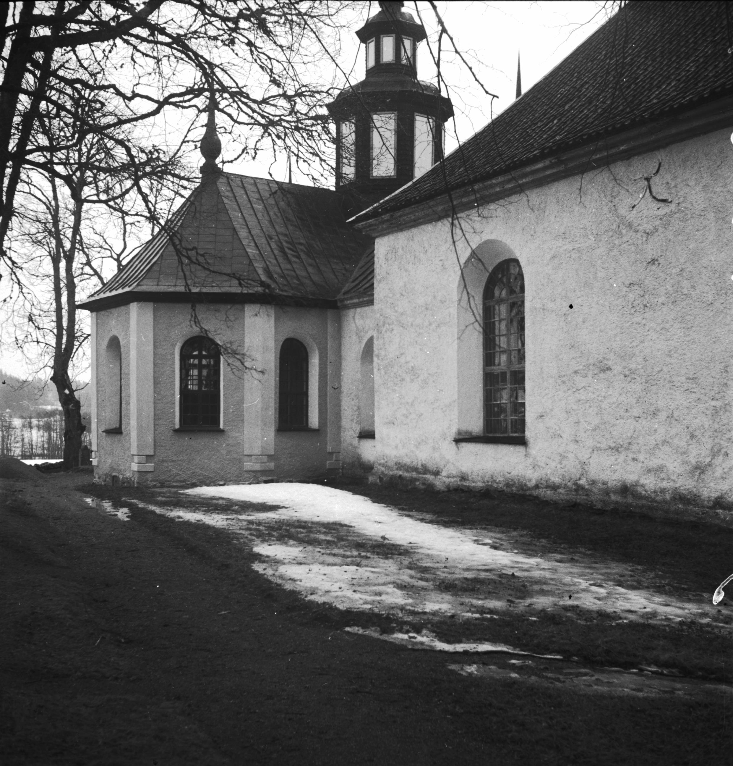 Norra fasaden, del av långhuset samt ätten Silfverstjernas gravkor, mot nordväst.