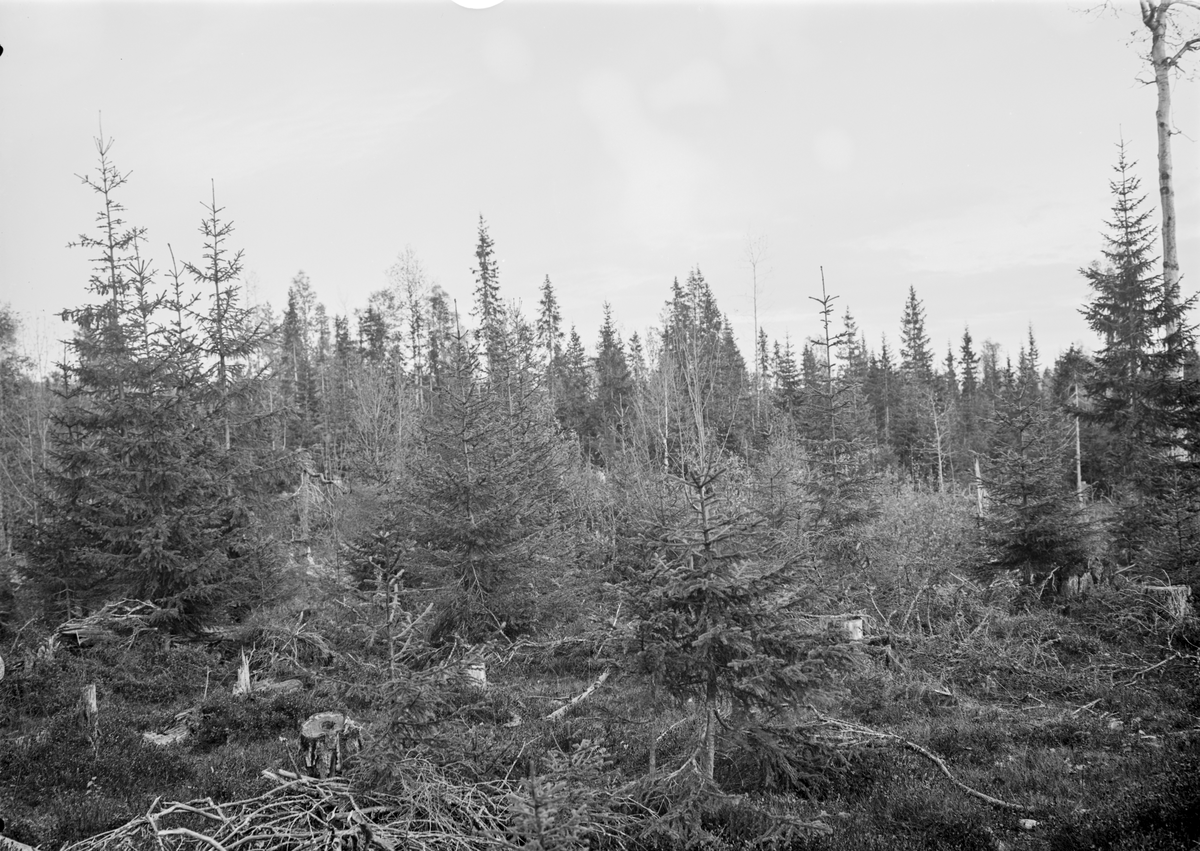 Skedom: strax öster om Grubbevägen nära rågången mot kronomarken Norra Solberg. Avverkning 1903 och 1916 (rensning) i dålig granskog. Hyggesreaktion.