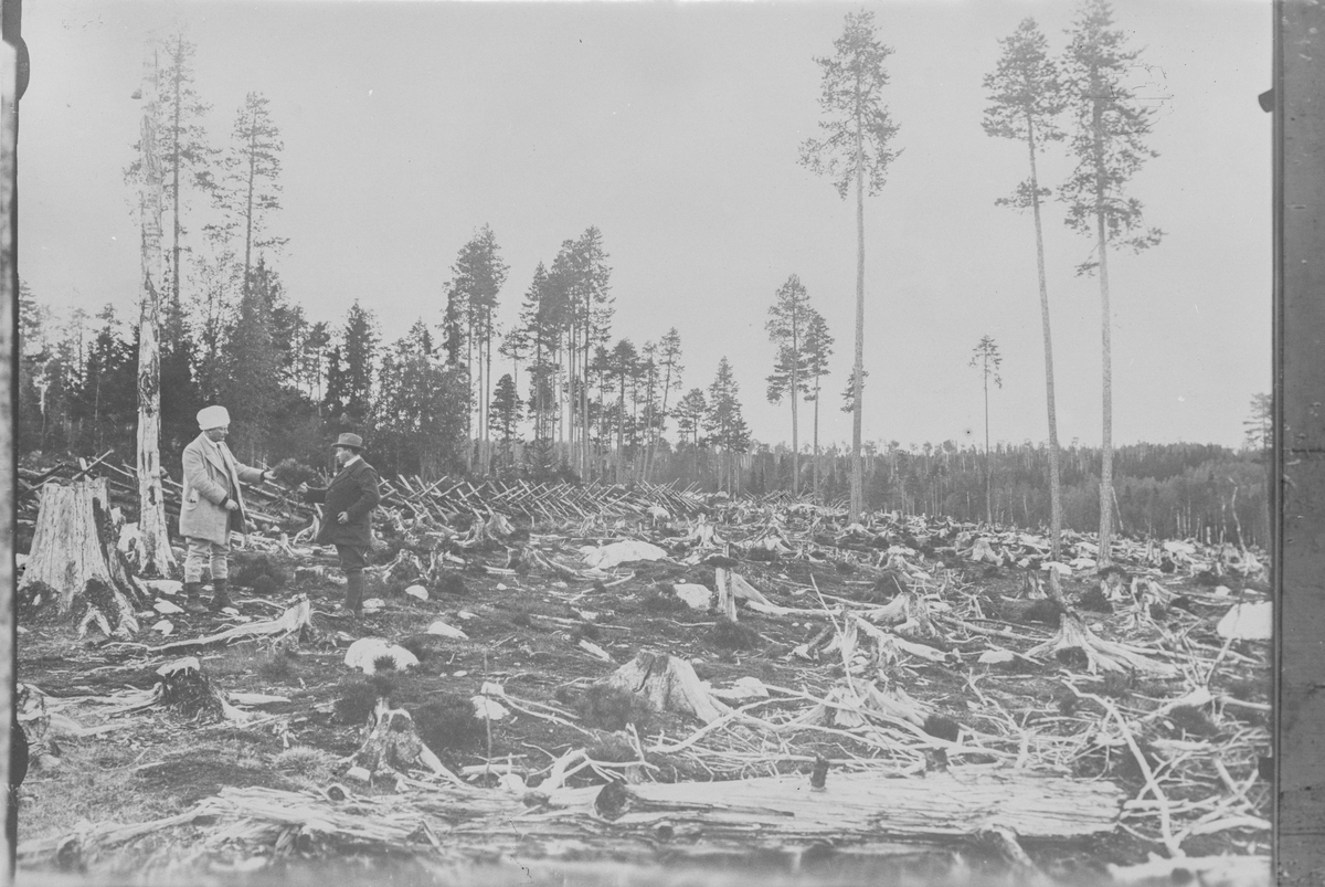 Kubbe: Bränd del av hygge öster om Risbäcksvägen. Avverkning 1904, bränning samma år, utsådd 1905. Trots hägnad plantorna deformerade av kreatursbete (får).