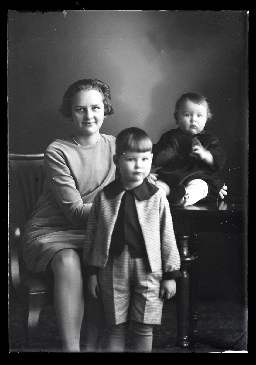 Titel: Grupporträtt, kvinna och två barn, Henry Larsson, Sörstafors. Ur Gustaf Åhmans samling.