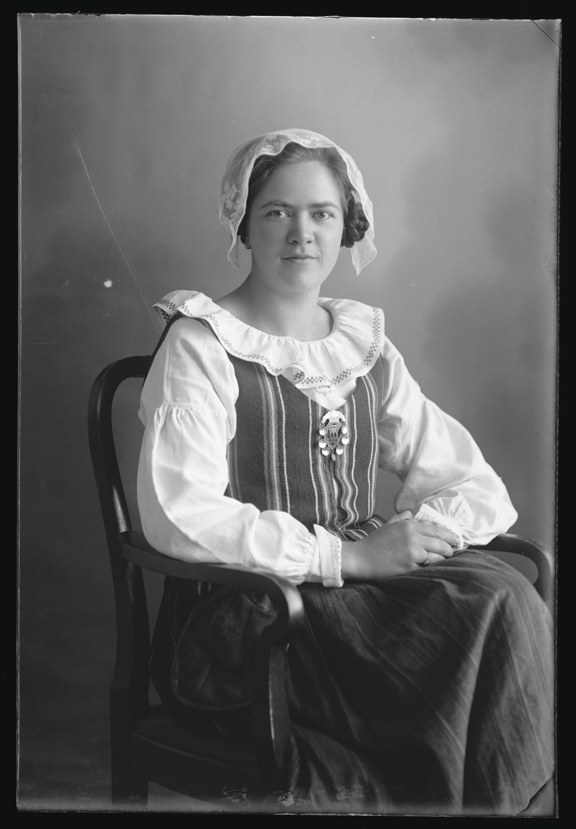 Porträtt. Karin Strand. Säby, Kolbäck. Ur Gustaf Åhmans bildarkiv.