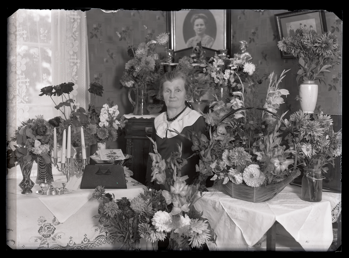 Kvinnoporträtt, 50-års foto. Fru Edla Andersson, Sörstafors, Kolbäck.