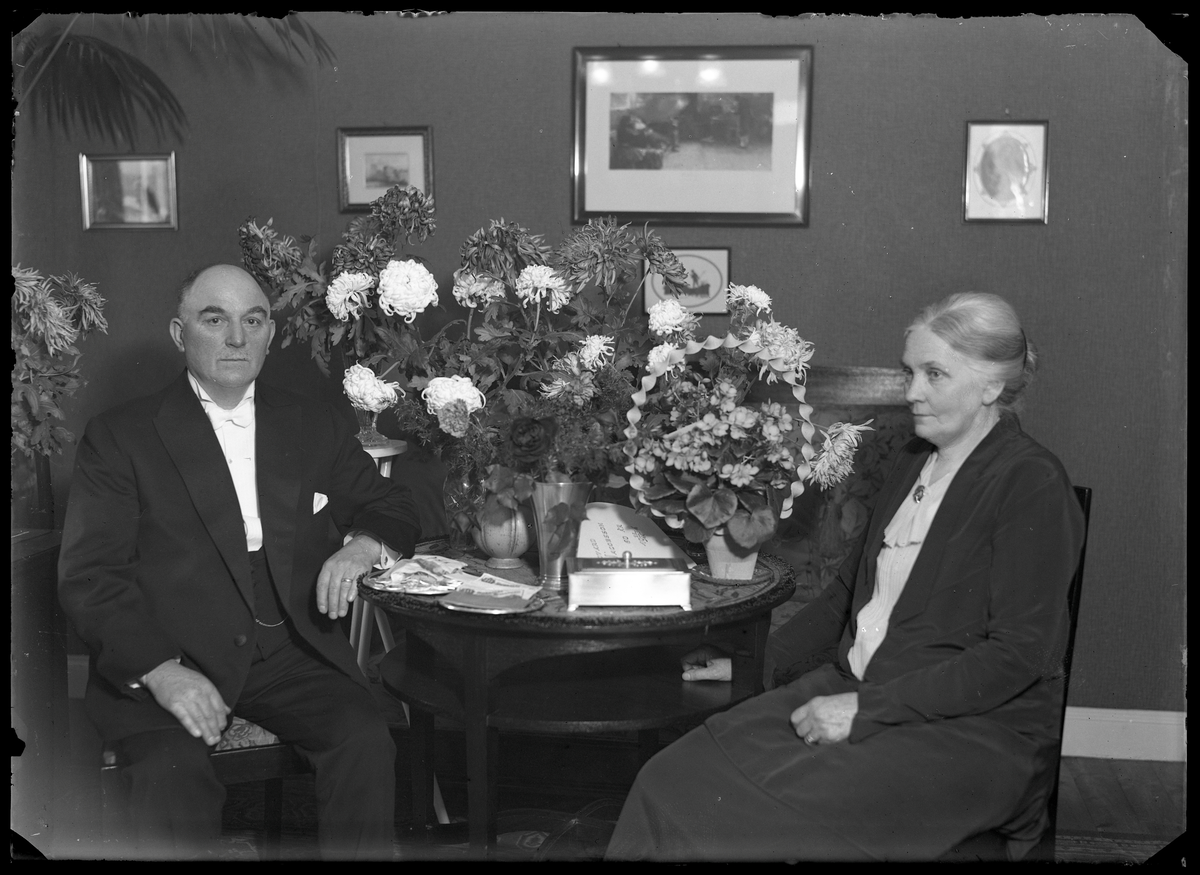 Grupporträtt, två personer. E. Jakobsson, Solliden, Hallstahammar.