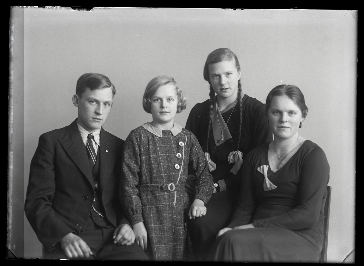 Grupporträtt, fyra personer. V. Petterson, Yllesta, Kolbäck.