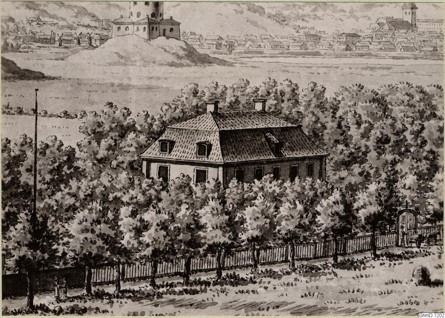 Mariedals landeri i Gamlestaden. Staden sedd från öster 1801. I bakgrunden Skansen lejonet.