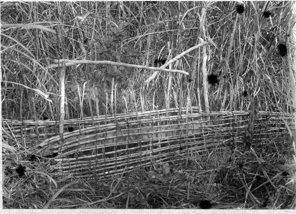En stockfälla. Träkonstruktion i form av...stängsel...staket.