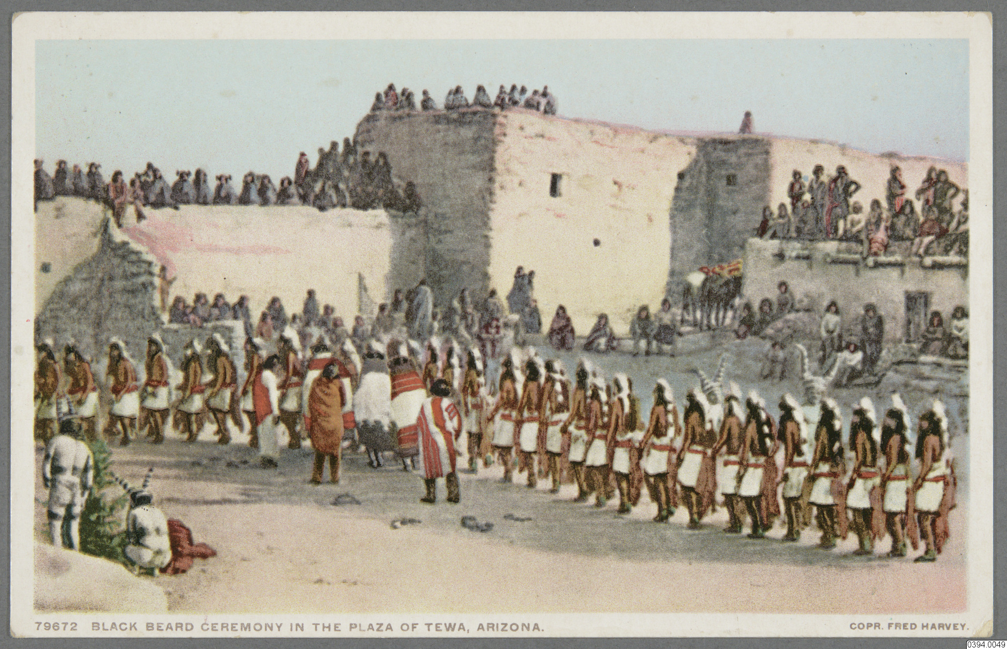 Vykort med motiv av en ceremoni med ursprungsbefolkning i Tewa, Arizona.