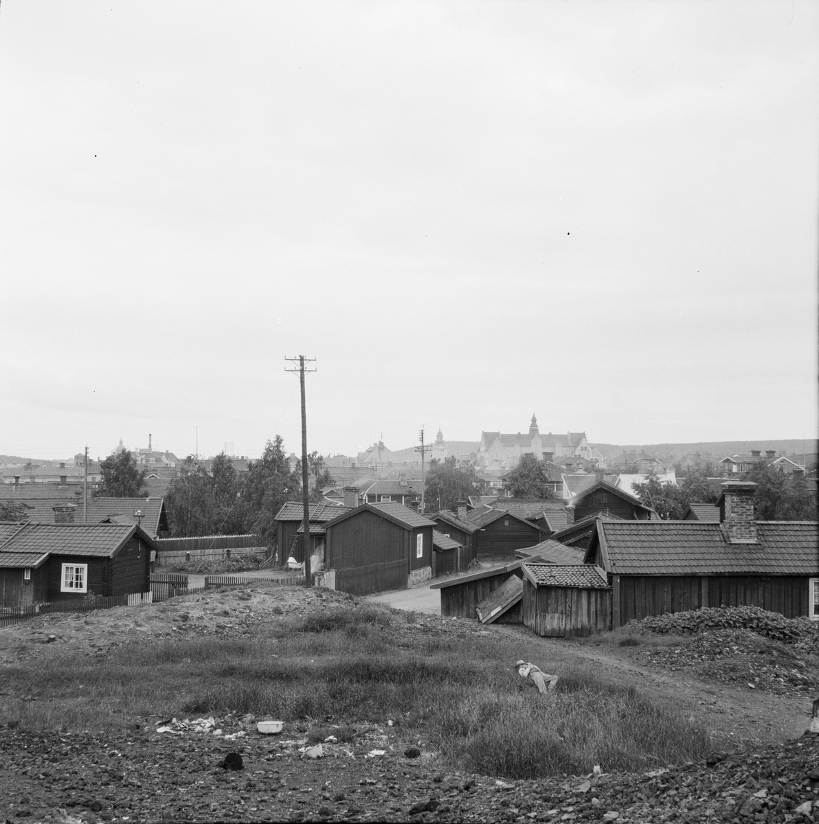 Falun, från varp söder om urlakningen, små gyttrade gårdar vid Gamla herrgården. I bakgrunden Västra skolan.