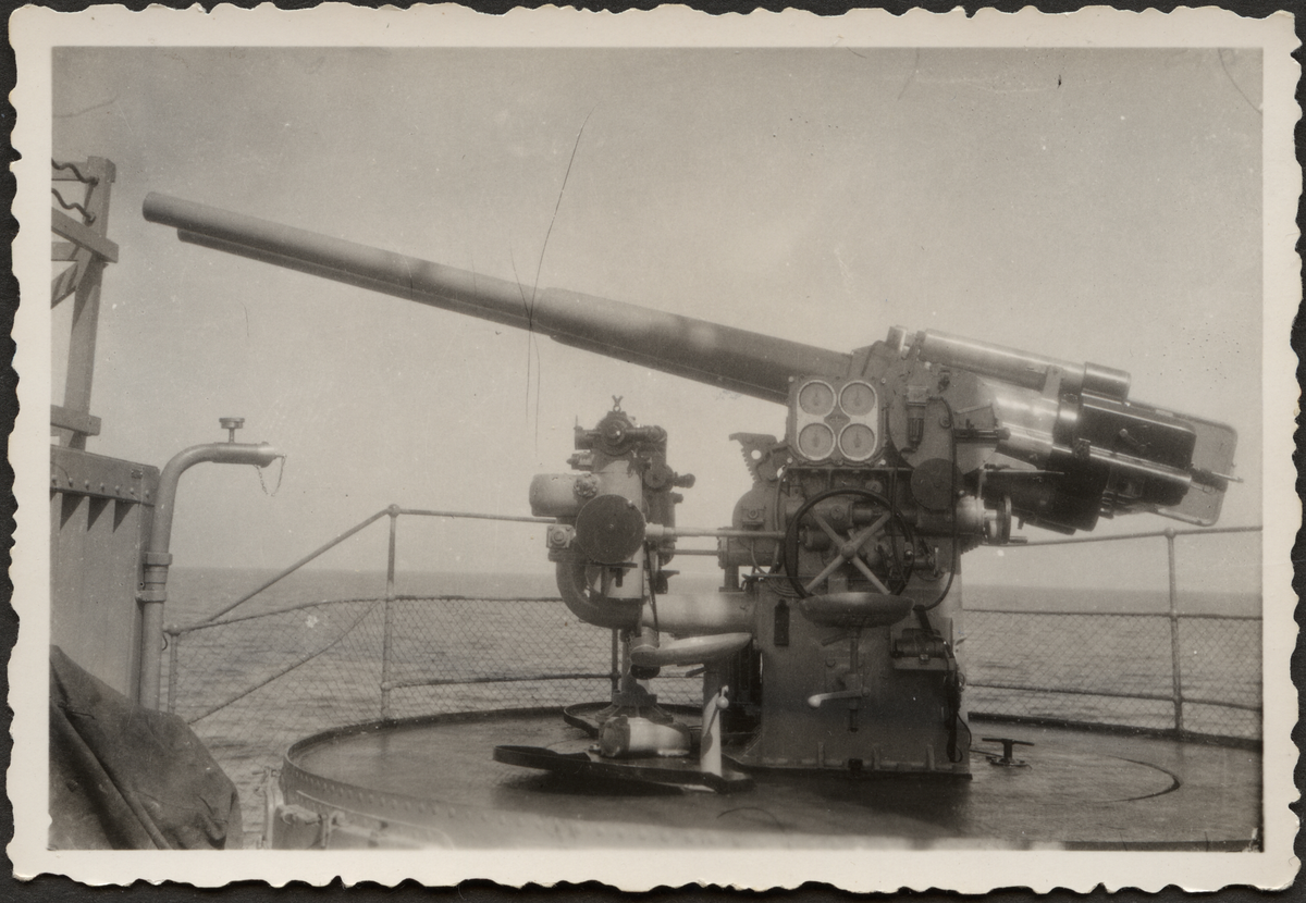 Bilden visar en 75 mm dubbel luftvärnskanon ombord på Gotland.