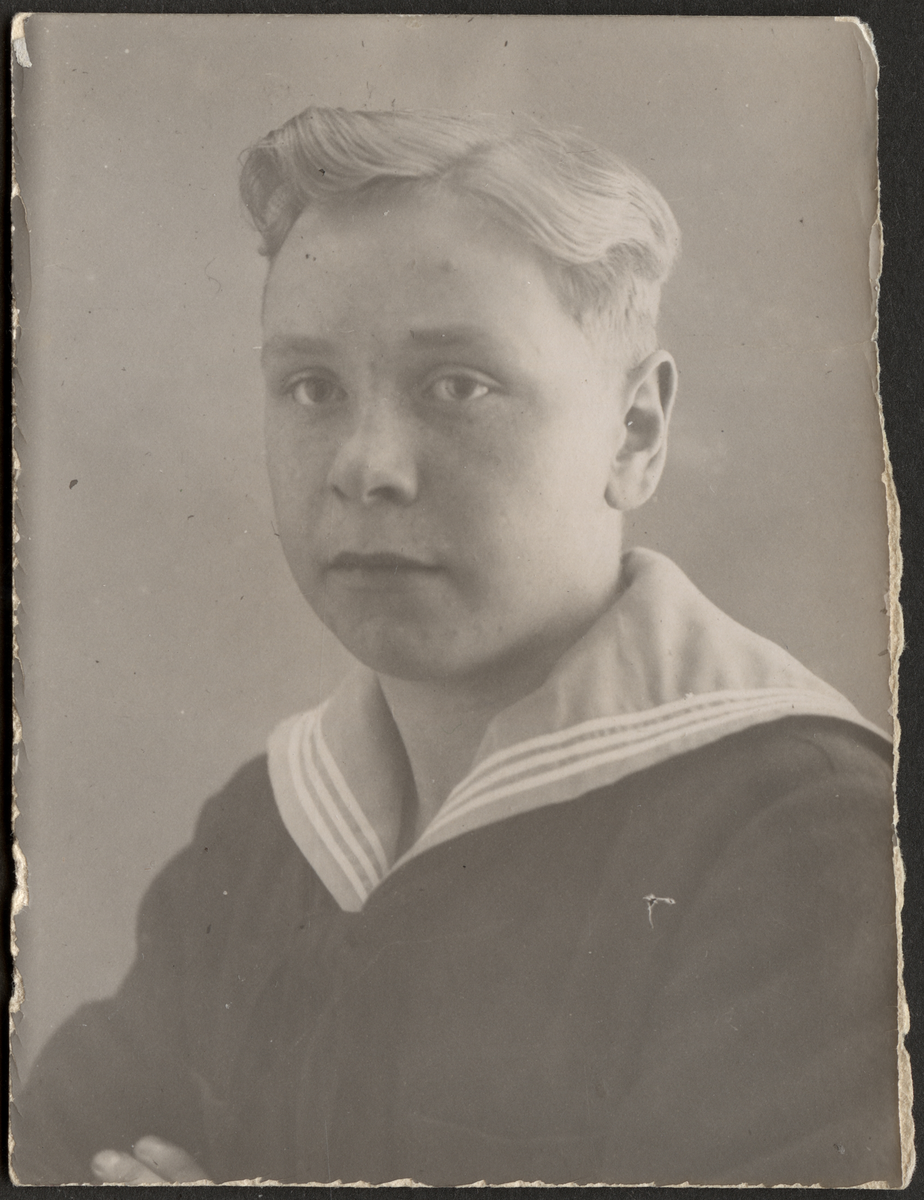 Porträtten föreställer en bröstbild av skeppsgossen Olle Petter Appelqvist i kvartsprofil.