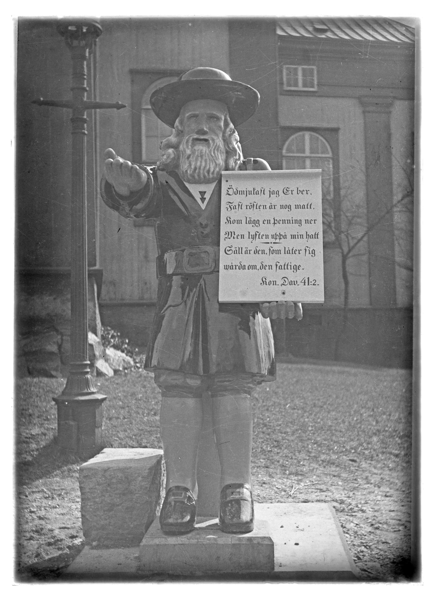 Bilden förställer skulpturen av Rosenbom som står framför Amiralitetkyrkan i Karlskrona.