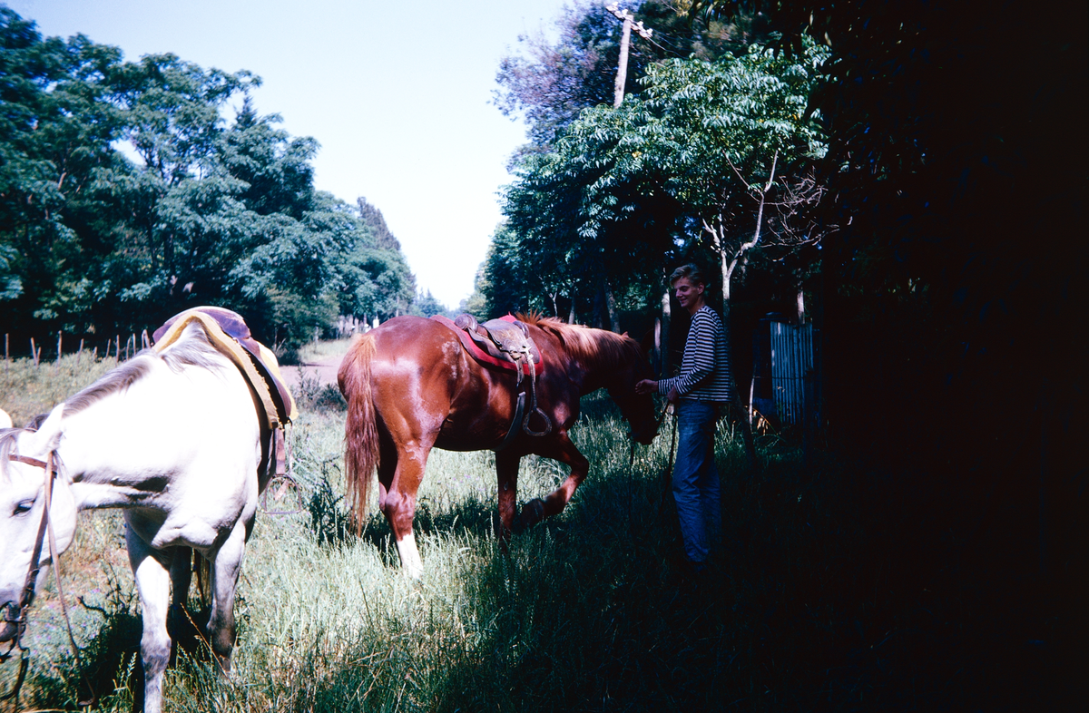 Sjömannen Peter Lindquist med två hästar i Argentina.