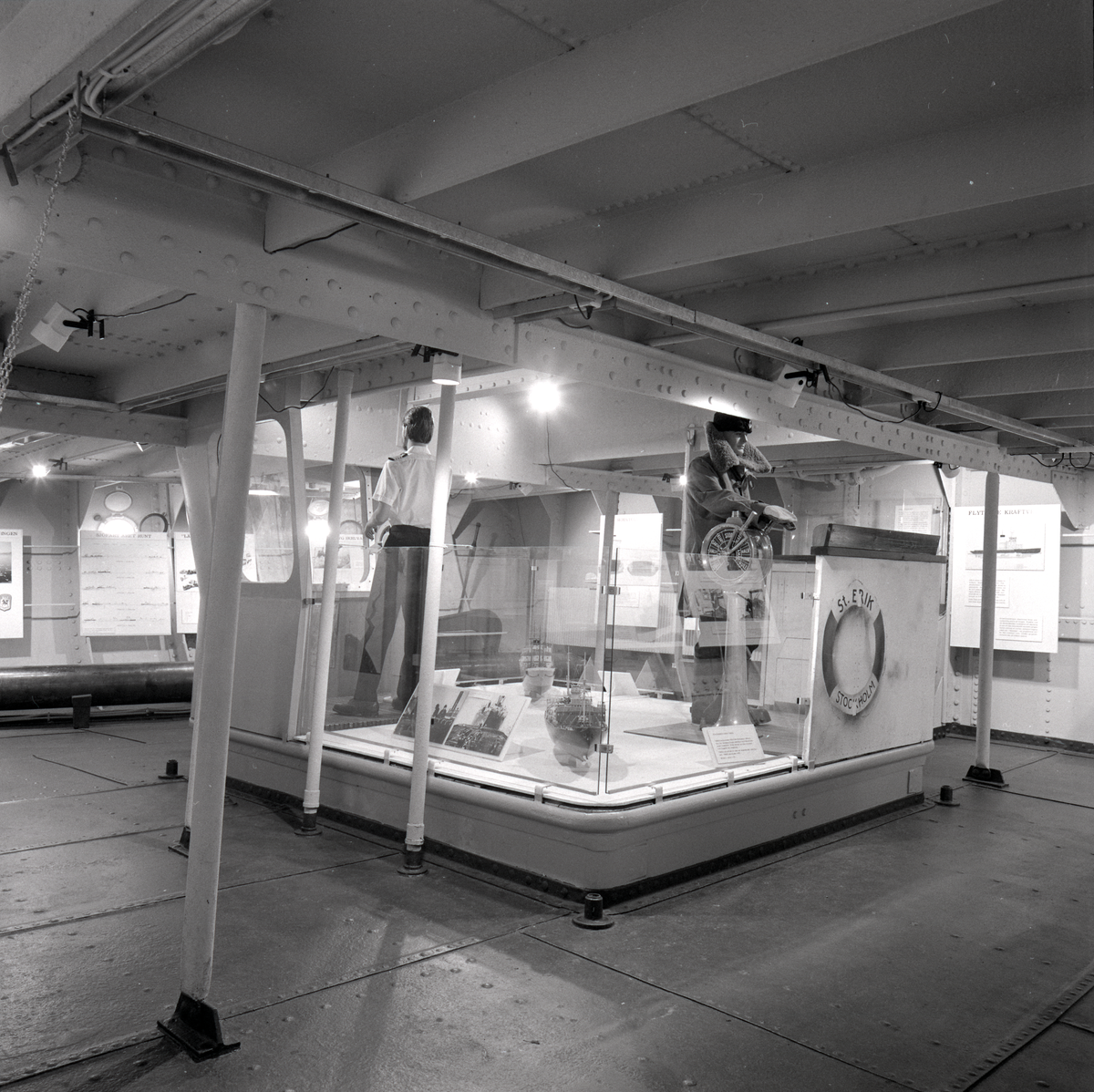 Utställningen "Vintersjöfart" på isbrtaren SANKT ERIK. Del av utställningen i lastutrymmet.